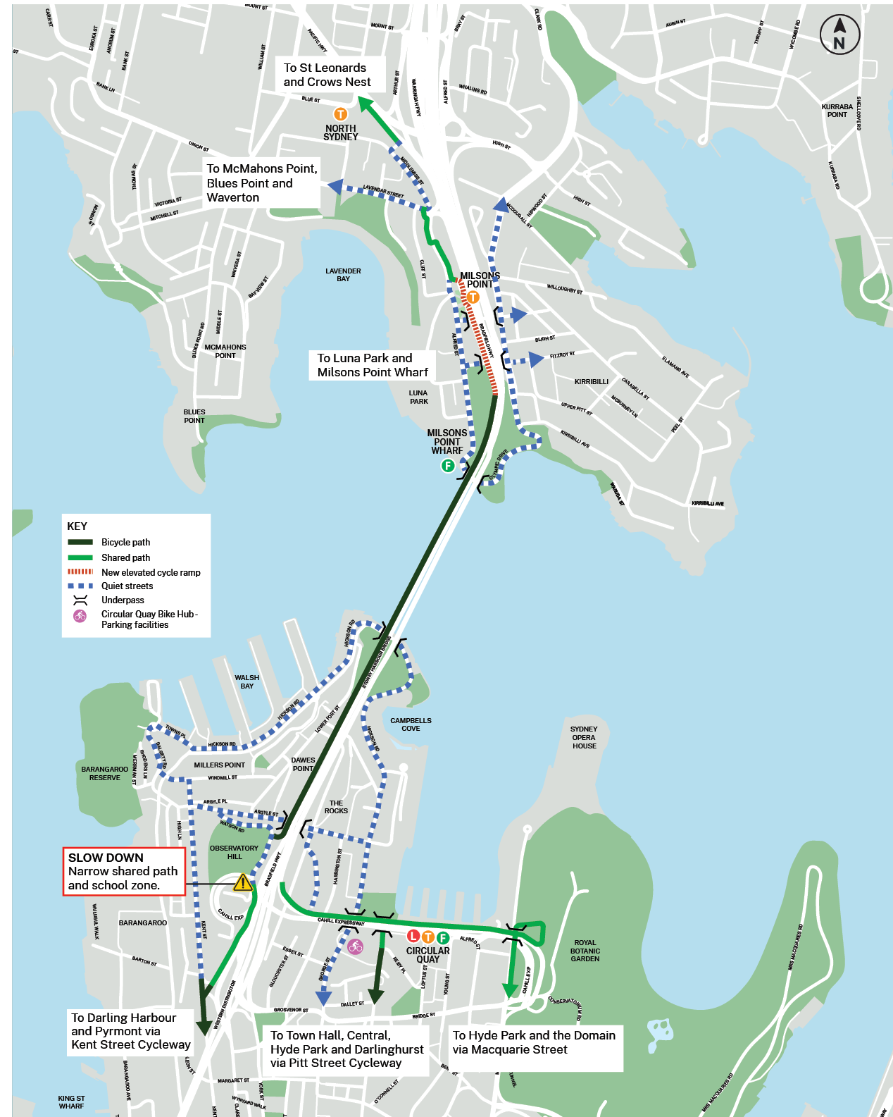 Download the Sydney Harbour Bridge cycleway connections map (pdf 215KB)